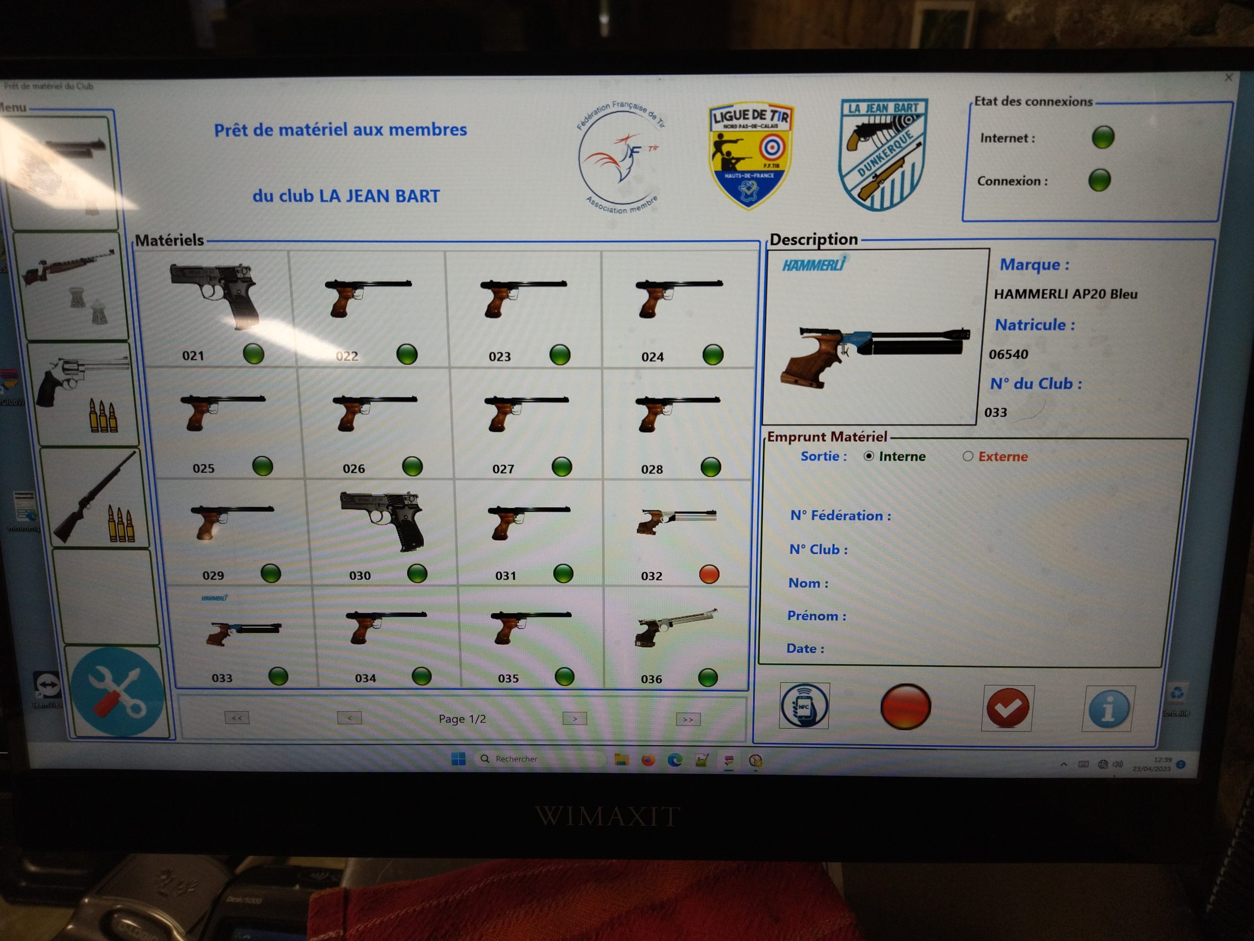 Depuis mercredi, nous avons à disposition un outil de gestion informatisé des armes du club. associé au système de suivi des présences, il permet avec un simple passage de notre carte de membre, d’enregistrer le prêt d’une arme. Plus besoin de laisser une pièce d’identité.