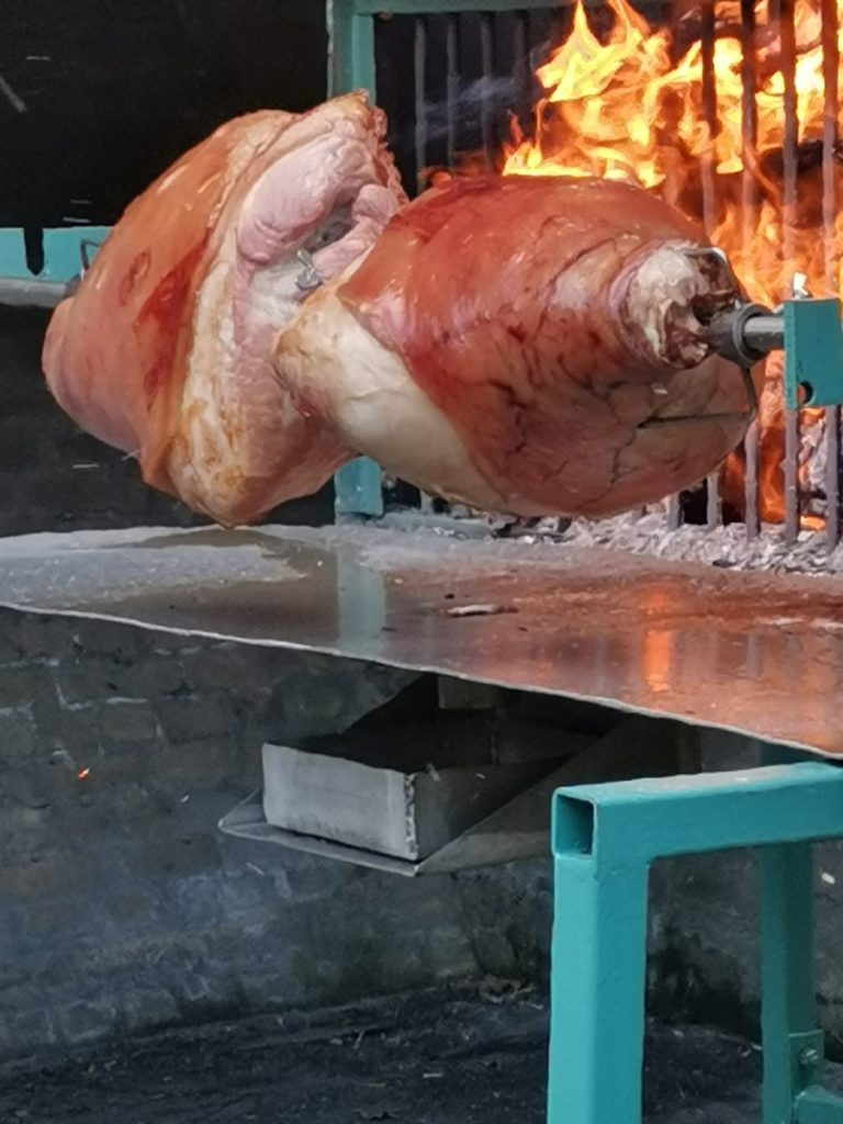 La rôtissoire, développée et fabriquée par un autre Dominique !! Les jambons succulents .